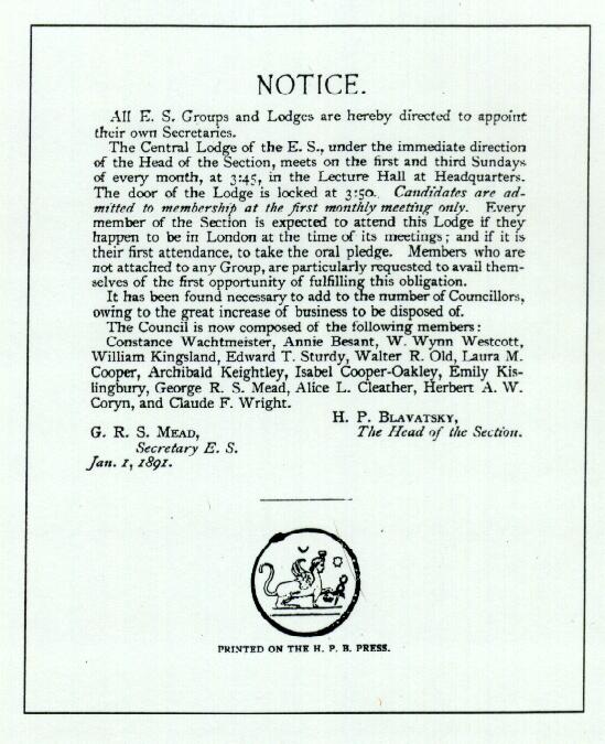 H.P. Blavatsky's E.S. Notice