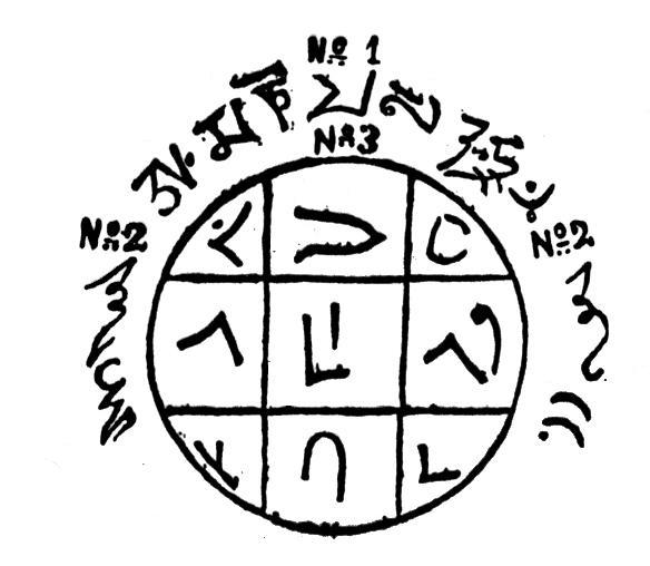 divided the characters in three groups, marked Nos. 1, 2 and 3. Number one is Tibetan;